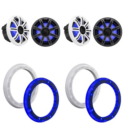Kicker (2 Pair) 51MSC84 8" LED Premium Marine Speakers & 51KLSR88 - 8.8-Inch to 8-Inch LED Adapter Rings Bundle