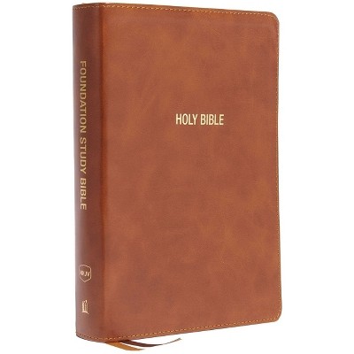 Nkjv, Foundation Study Bible, Large Print, Leathersoft, Brown, Red Letter, Comfort Print - by Thomas Nelson (Leather Bound)