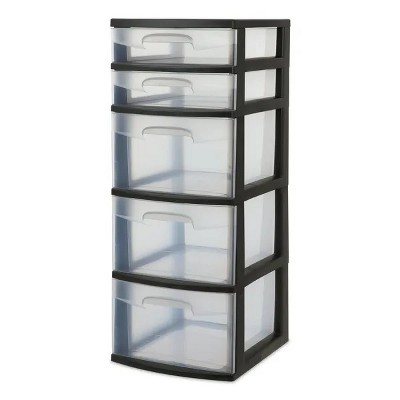 Plastic 5-Drawer Tower, Black with Clear Drawers, Adult