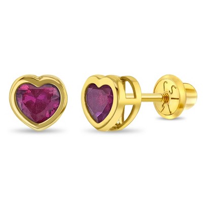 Girls' Heart Bezel Simulated Birthstone Screw Back 14k Gold Earrings - In Season Jewelry