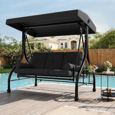 Outsunny 3-Person Porch Swing with Stand, Outdoor Swing for Patio Porch with Adjustable Tilt Canopy & Comfortable Swing Bench-Style Seat, Steel Frame