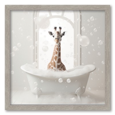 Courtside Market Artful Animal Bath Scenes Giraffe 16x16 Framed Board