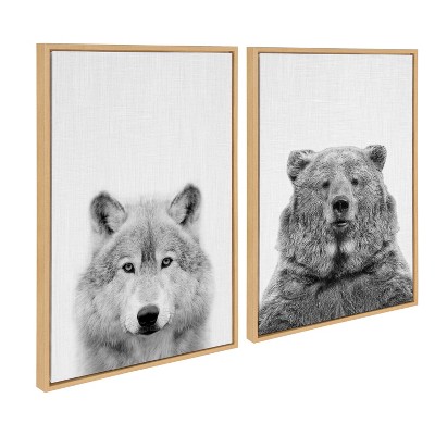 (Set of 2) Sylvie Wolf Bear European Canvas Art Set by Simon Te - Kate & Laurel All Things Decor