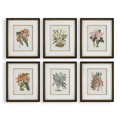 Uttermost Orchid Botanical Prints-Diverse Orchid Varieties in Gold Lined Frames, Set of 6