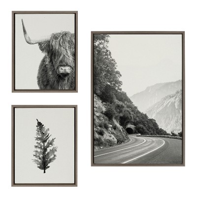 Kate and Laurel Sylvie Highland Cow and Vintage Botanical Framed Canvas Set by Various Artists