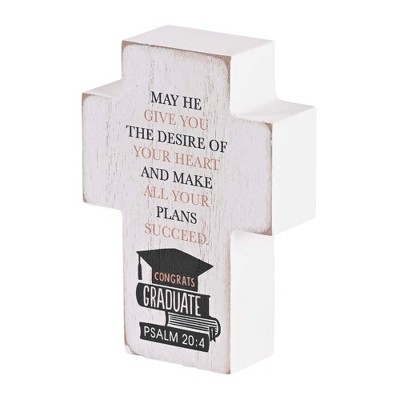 Dicksons TPLKC34-106 May He Give You The Desire Of Your Heart White And Black 3 x 4 Wood Distressed Cross Shaped Decorative Tabletop Plaque Home D?cor