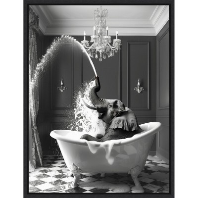 Amanti Art Splish Splash Safari Elephant by Niky Rahner Framed Canvas Wall Art