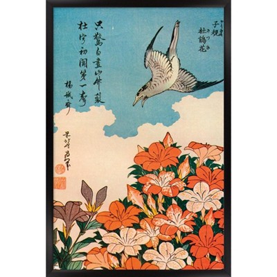 Trends International Cuckoo and Azalea by Katsushika Hokusai Framed Wall Poster Prints