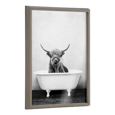 18" x 24" Blake Highland Cow in the Tub BW Framed Printed Glass - Kate & Laurel