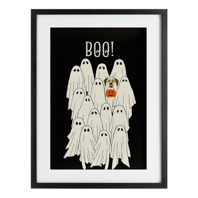 Stupell Industries Vintage Halloween Ghost & Pumpkin Framed Print Under Glass Art, White, 16" x 16"