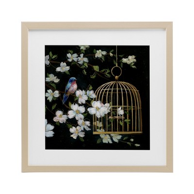 Stupell Industries Evening Song Birdcage over Black Framed Print Under Glass Art