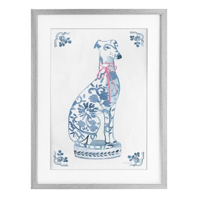 Stupell Industries Chinoiserie Dog Statue Framed Print Under Glass Art
