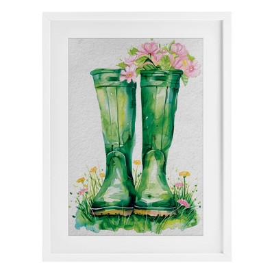 Stupell Industries Spring Blooms Green Rainboots Framed Print Under Glass Art