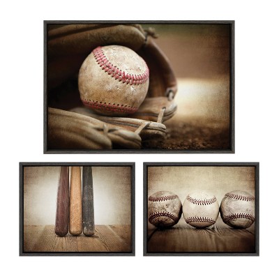 Kate & Laurel All Things Decor (Set of 3) Sylvie Three Vintage Bats Baseball Glove at Home Plate Wall Art Set by Saint and Sailor Studios