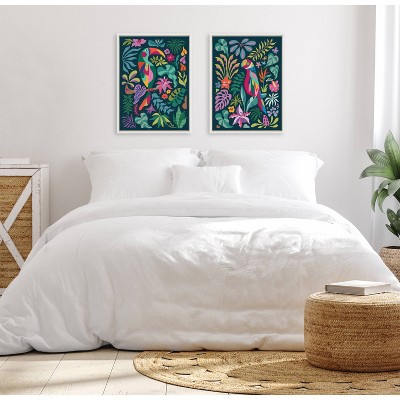 Kate & Laurel All Things Decor (Set of 2) Sylvie Tropical Parrot and Toucan Framed Canvas Arts by Rachel Lee