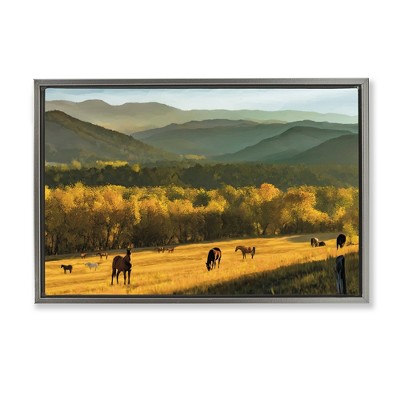 Stupell Industries Galloping Horses Cloudy Mountains Floating Frame Canvas Art