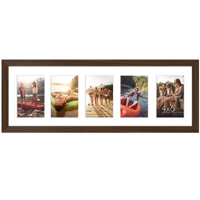 Americanflat 8x24 Collage Picture Frame with Five 4x6 Displays in Walnut - Composite Wood with Shatter Resistant Glass