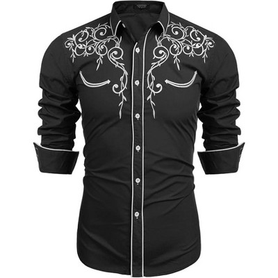 COOFANDY Men's Western Cowboy Shirts Long Sleeve Embroidered Shirt Slim Fit Casual Button Down Shirts