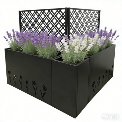 NAYSAYE Metal Planter-Trellis Combo Set of 3 for Patio Balcony with Drainage Holes Raised Flower Bed and Privacy Screen, Black, 47.4"*47.4"*47.3"