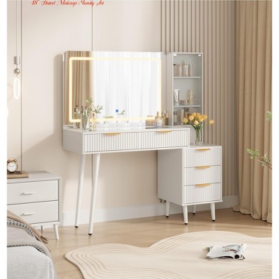 - single bathroom vanity with makeup area