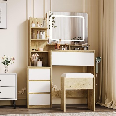 - single bathroom vanity with makeup area