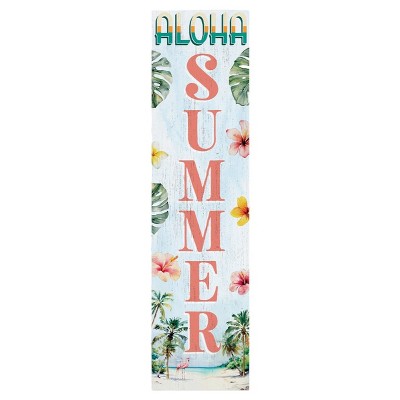 HomeRoots 36" Blue And Pink Solid Wood Tropical Floral Aloha Summer Porch Sign
