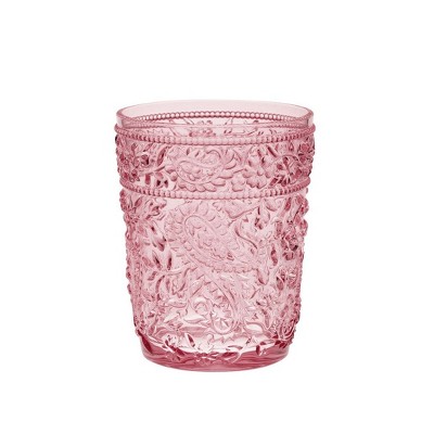 Fortessa Tableware Solutions 9oz Glass Noho Double Old Fashion Glass Pink: Dishwasher Safe Ribbed Drinkware Set
