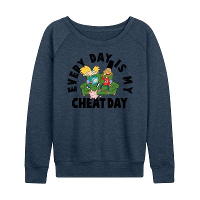 Women's - Hey Arnold! - Cheat Day Lightweight French Terry Wide Neck Long Sleeve Graphic Shirt