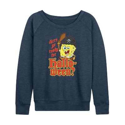 Women's - SpongeBob SquarePants - Arrr Ye Ready For Halloween Lightweight French Terry Wide Neck Long Sleeve Graphic Shirt
