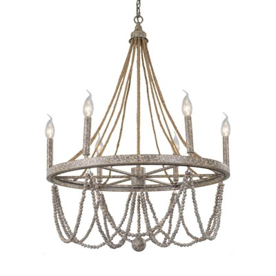 LNC Elegant 6-Lights 28.5" French Country/Cottage Empire Large Chandelier,Distressed Gray