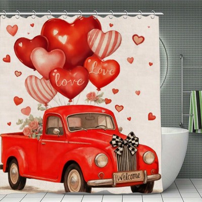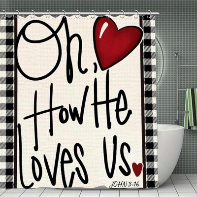 Valentine's Day Black Buffalo Plaid "How He Loves Us" Shower Curtain - Waterproof Durable Polyester 70.8x70.8Inch