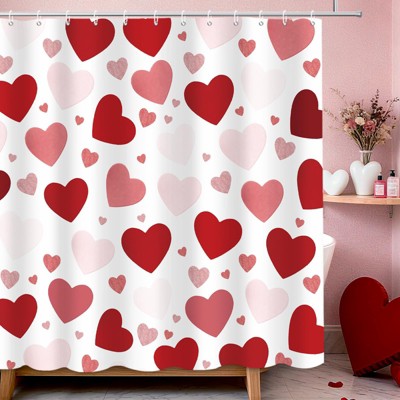 70.8"Valentines Shower Curtain Rose-Gold Pink Burgundy-Red Love Hearts Shower Curtain for Valentine's Day