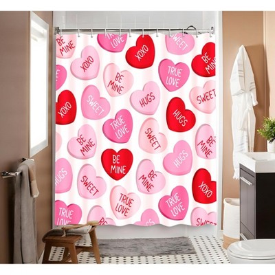 Soscooter Red Butterfly Heart Flower Swirl Polyester Shower Curtain Bathtub Shower Window Curtain Room Divider Bathroom Decor 70.8x70.8Inch