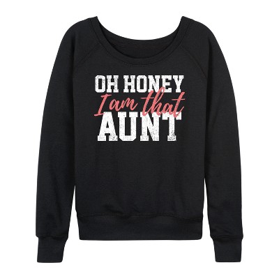 Women's - Instant Message - Oh Honey I Am That Aunt Lightweight French Terry Wide Neck Long Sleeve Graphic Shirt