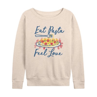 Women's - Instant Message - Eat Pasta Feel Love Lightweight French Terry Wide Neck Long Sleeve Graphic Shirt