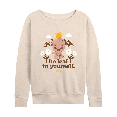 Women's - Marvel - Guardians of the Galaxy Be Leaf In Yourself Lightweight French Terry Wide Neck Long Sleeve Graphic Shirt