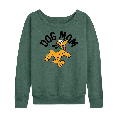 Women's - Disney - Dog Mom Pluto Lightweight French Terry Wide Neck Long Sleeve Graphic Shirt