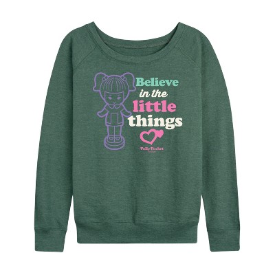 Women's - Polly Pocket - Believe In The Little Things Lightweight French Terry Wide Neck Long Sleeve Graphic Shirt