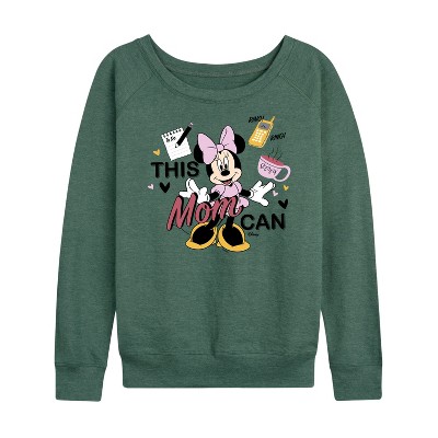 Women's - Disney - Minnie Mouse This Mom Can Lightweight French Terry Wide Neck Long Sleeve Graphic Shirt