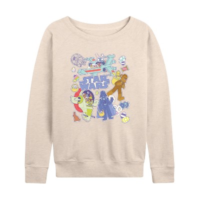Women's - Star Wars - Easter Sticker -Women's French Terry Pullover Sweatshirt Lightweight French Terry Wide Neck Long Sleeve Graphic Shirt