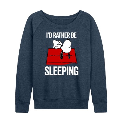 Women's - Peanuts - I'd Rather Be Sleeping Lightweight French Terry Wide Neck Long Sleeve Graphic Shirt