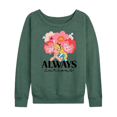 Women's - Alice In Wonderland - Lightweight French Terry Wide Neck Long Sleeve Graphic Shirt