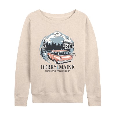 Women's - IT: Welcome to Derry - Welcome To Derry Destination Lightweight French Terry Wide Neck Long Sleeve Graphic Shirt