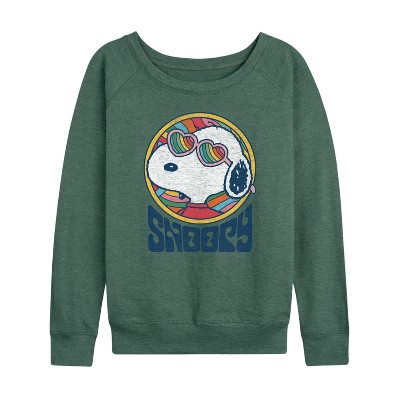 Women's - Peanuts - Groovy Snoopy Lightweight French Terry Wide Neck Long Sleeve Graphic Shirt
