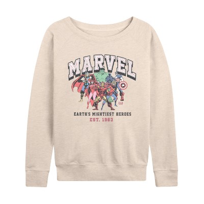 Women's - Marvel - Collage Lightweight French Terry Wide Neck Long Sleeve Graphic Shirt