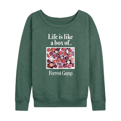 Women's - Forrest Gump - Life Is Like A Box Of Chocolates Lightweight French Terry Wide Neck Long Sleeve Graphic Shirt