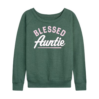 Women's - Instant Message - Blessed Auntie Lightweight French Terry Wide Neck Long Sleeve Graphic Shirt
