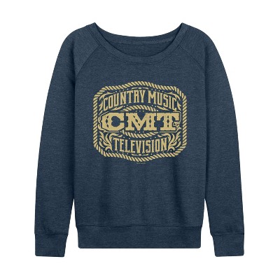 Women's - CMT - Belt Buckle Lightweight French Terry Wide Neck Long Sleeve Graphic Shirt