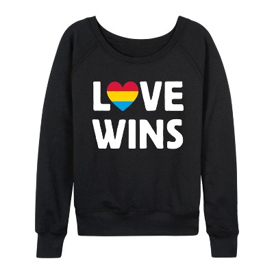 Women's - Instant Message - Love Wins Lightweight French Terry Wide Neck Long Sleeve Graphic Shirt