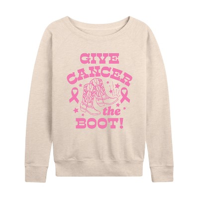 Women's - Instant Message - Give Cancer The Boot Lightweight French Terry Wide Neck Long Sleeve Graphic Shirt